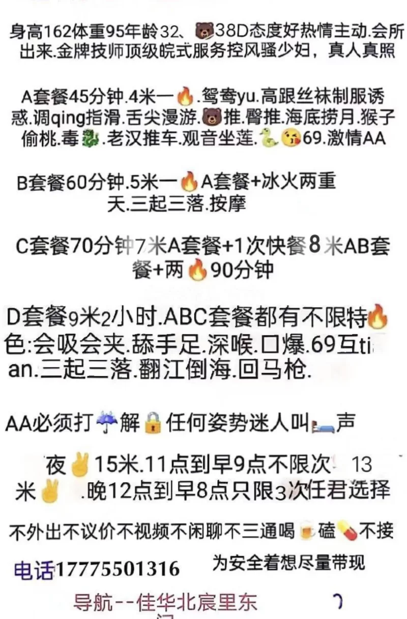 总时长110分钟,先做SPA,最后做手推,性价比很高。不是直接套弄,很舒服比KB、ML爽还不用自己动不用担心艾滋。 联系方式是座机。
