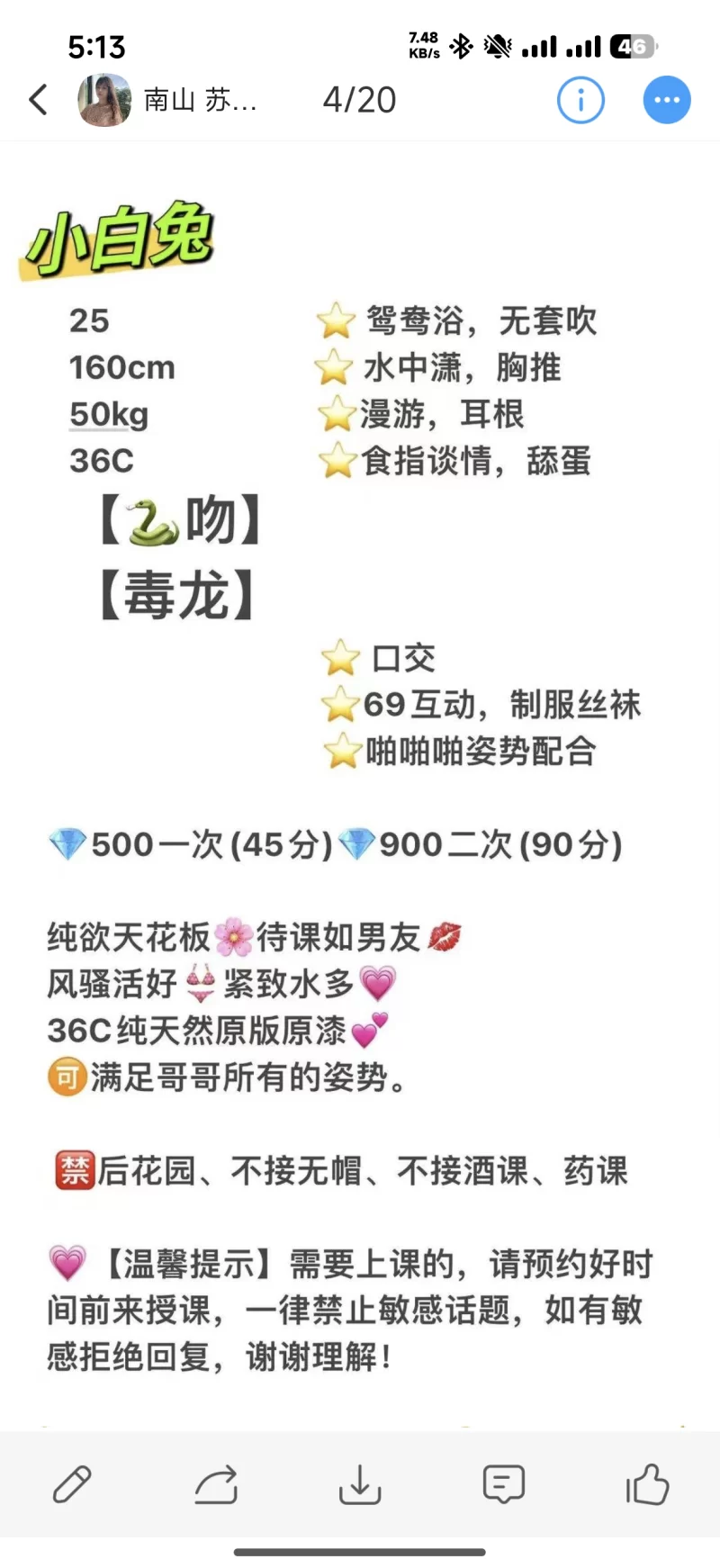颜值身材: 颜值还可以,可以舌吻